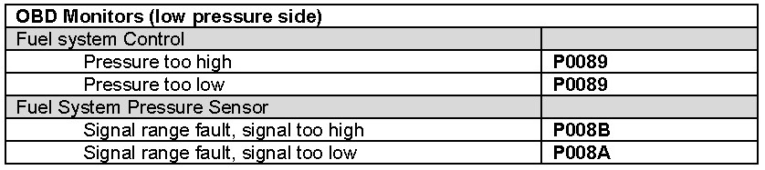 14.22.1 Fuel System Pressure Sensor, Signal Range Fault, too high / low, P008B / P008A