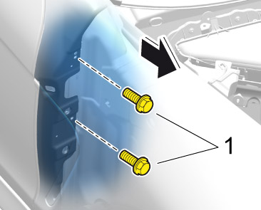 6. For the right wing: Remove reservoir for windscreen washer system. -> 926019 Removing and installing reservoir for windscreen washer system - section on "Removing"
