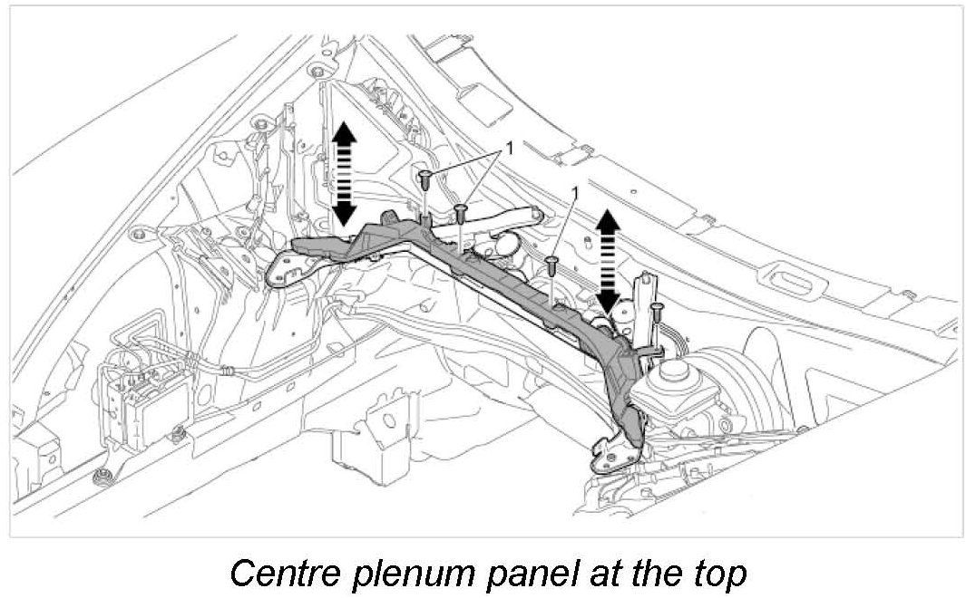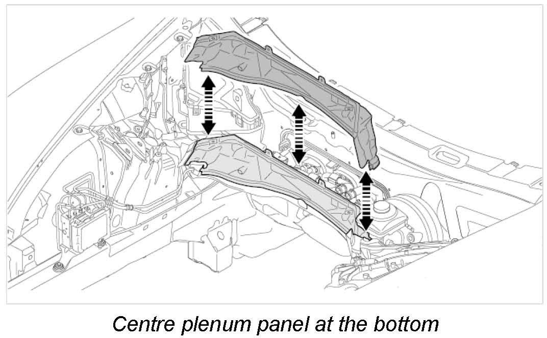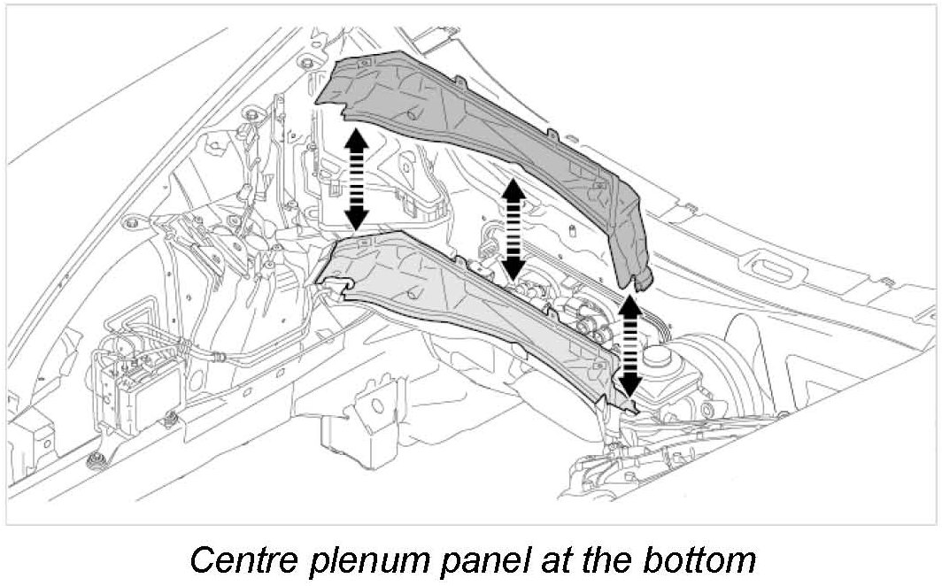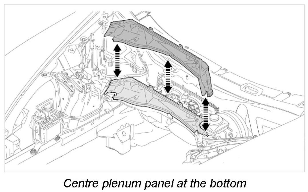 12.1. Get another mechanic to help you lift the centre plenum panel at the bottom to the right and remove it.