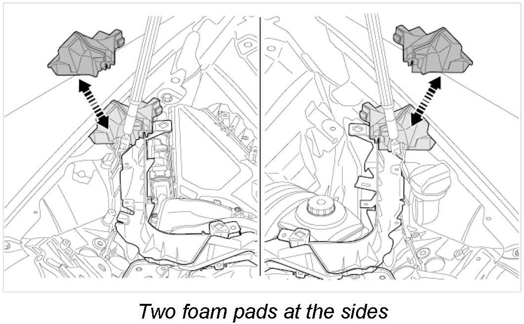 13. Fit the two foam pads at the sides of the wing. -> Two foam pads at the sides