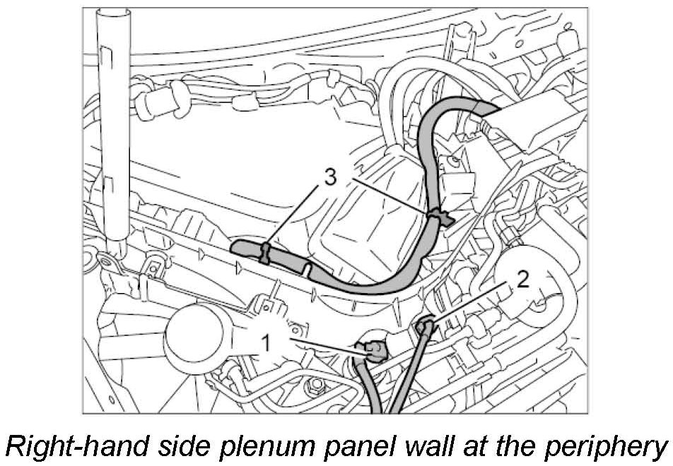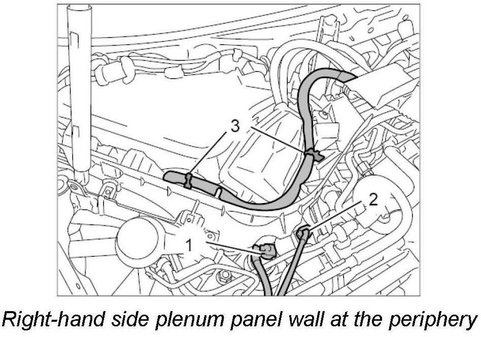9. Fit heater and coolant hoses on both sides of the centre plenum panel wall at the top.