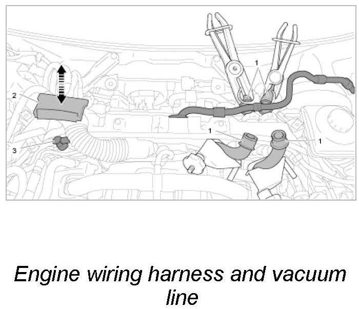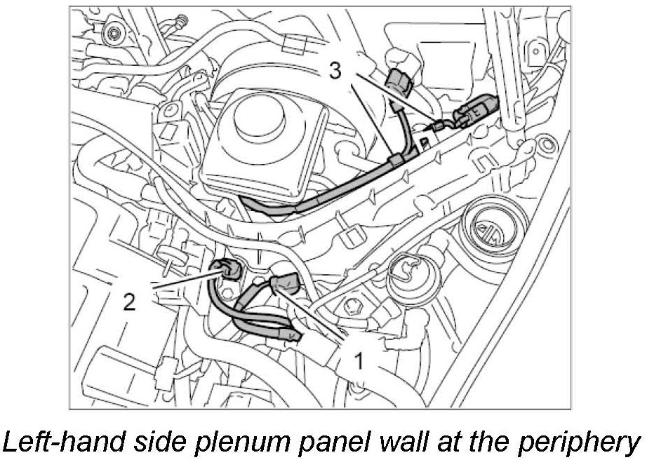6. Pull engine wiring harness out of the centre plenum panel wall. -2-