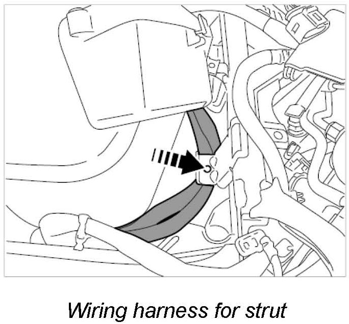 5.3. Press in wiring harness under the strut. -> Wiring harness for strut
