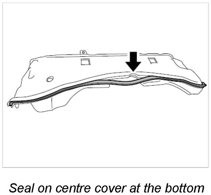 1. Before re-installing the centre plenum panel at the bottom, first fit the seal on the edge of the plate and spray with commercially available silicone spray (this makes it easier to push on the plenum panel wall). -> Seal on centre plenum panel at the bottom