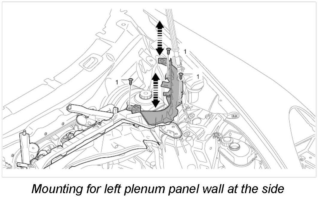 2.1. Get another mechanic to help you move the centre plenum panel wall at the bottom into installation position and press on the seal. Align the plenum panel wall.