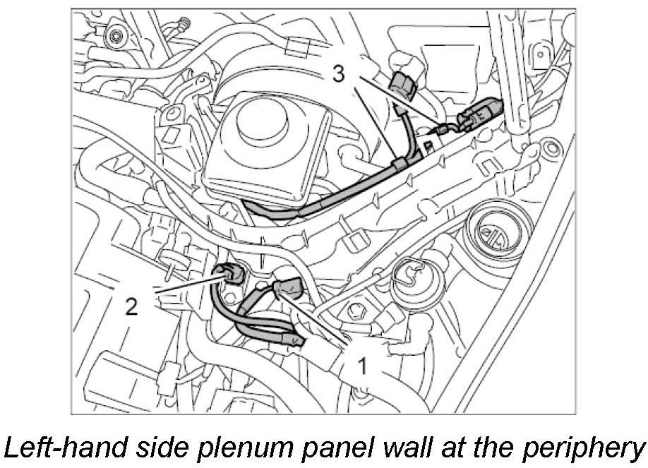 3.2. Detach and expose wiring harness at the plenum panel wall. -3-