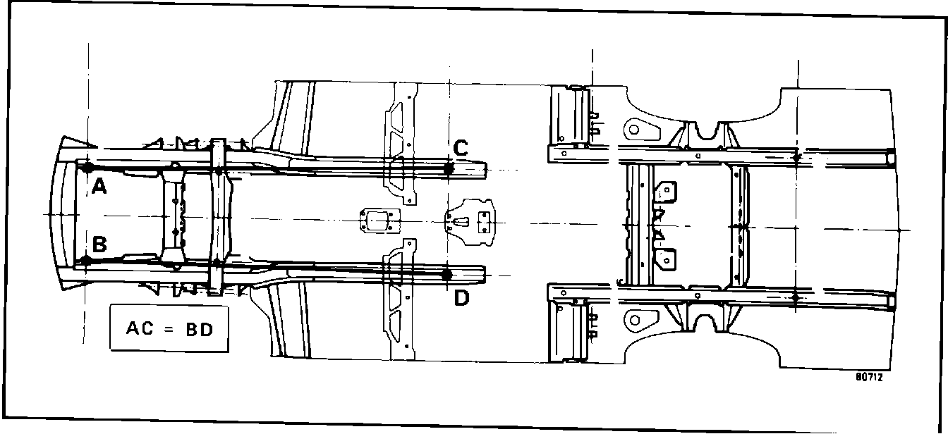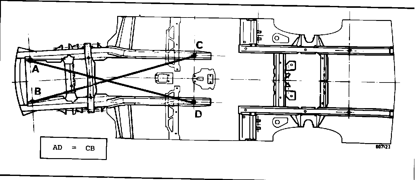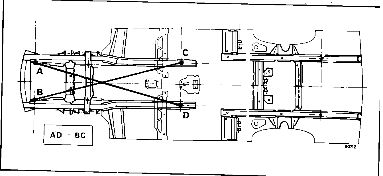 A check of length on the same vehicle having front end damage may prove correct but the diagonals may be unequal as shown (Figs. 7 and 8).