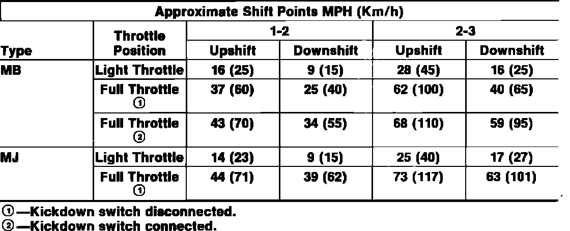 Fig. 2 Transaxle performance check. Approximate shift speeds: