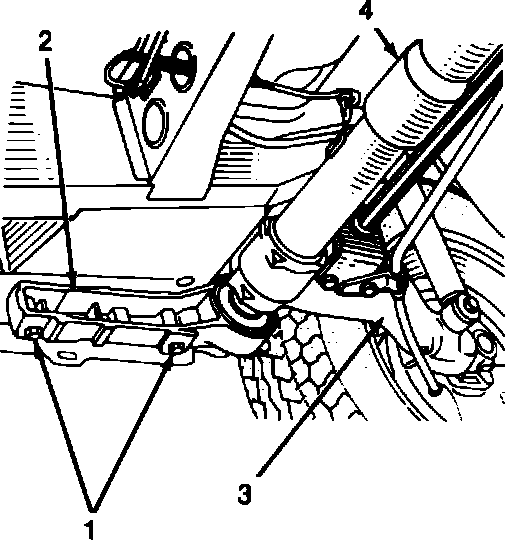 5. Remove bracket bolts (1), Fig. 1, then remove torsion bar and axle bracket (2) using suitable slide hammer.