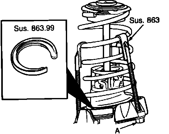 13. Using tools Sus. 594 and Sus. 594-02 or equivalents, compress spring until sixth coil can be held by tool Sus. 863 or equivalent, then remove tools Sus. 594 and Sus. 594-02.
