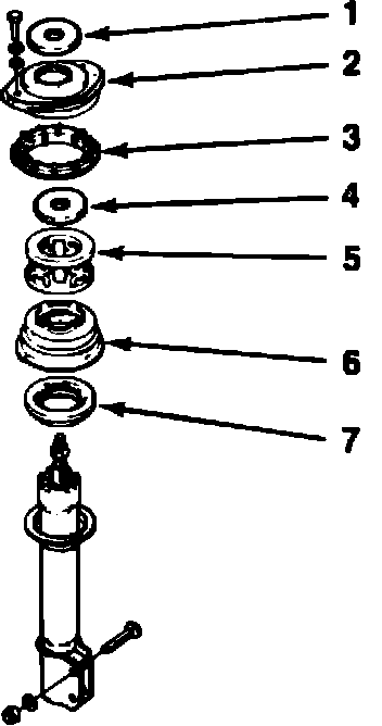 7. Remove nut on top of shock absorber piston rod.