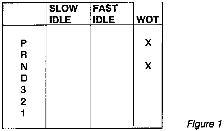 It is best to start pressure tests with mainline pressure. Mainline pressure should be checked in each range: P, R, N, D, 3, 2, 1. Each range, except Park and Neutral, should be checked under three conditions: Slow idle, fast idle, and wide open throttle. A form, as in figure 1 should be made to record the readings.