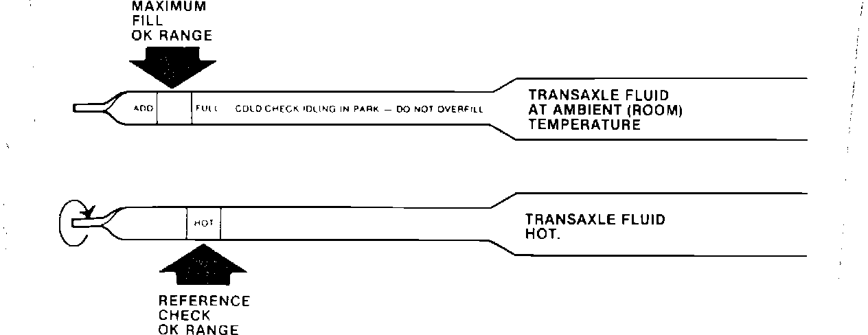 A correct fluid level and the proper type and quality of fluid are essential to proper operation of Alliance/Encore automatic transaxles. Overfilling or the use of non-factory approved fluid can lead to fluid foaming, fluid overflow from the fill tube and possible erratic shifting. To avoid overfill problems, always check and adjust (add or remove) transaxle fluid when it is at ambient (room) temperature.