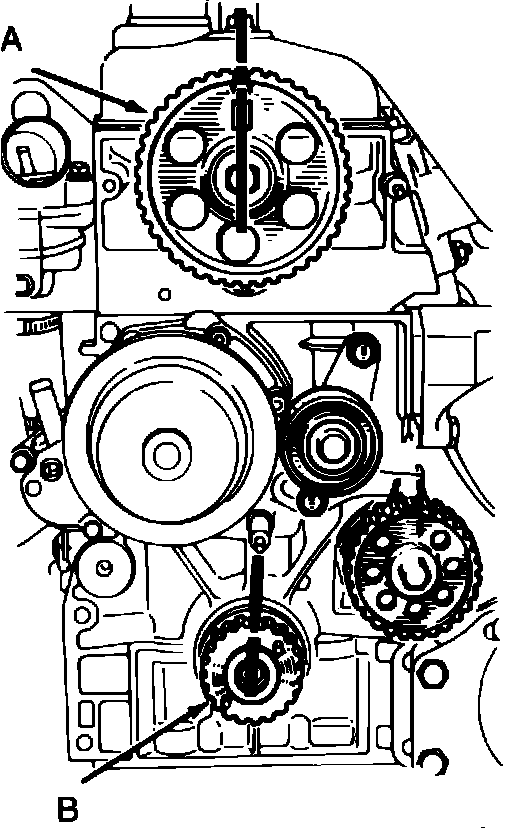 3. Install timing belt on sprockets, ensuring belt is tight between crankshaft and idler shaft sprockets, and between idler shaft and camshaft sprockets.