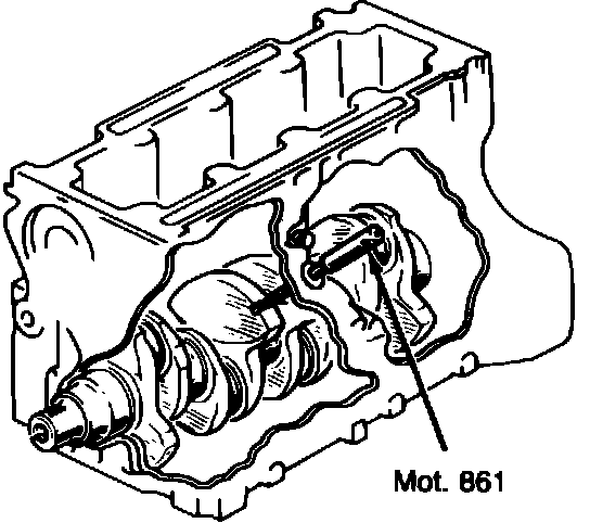 a. Remove TDC tool Mot. 861 from crankshaft and install crankcase plug.