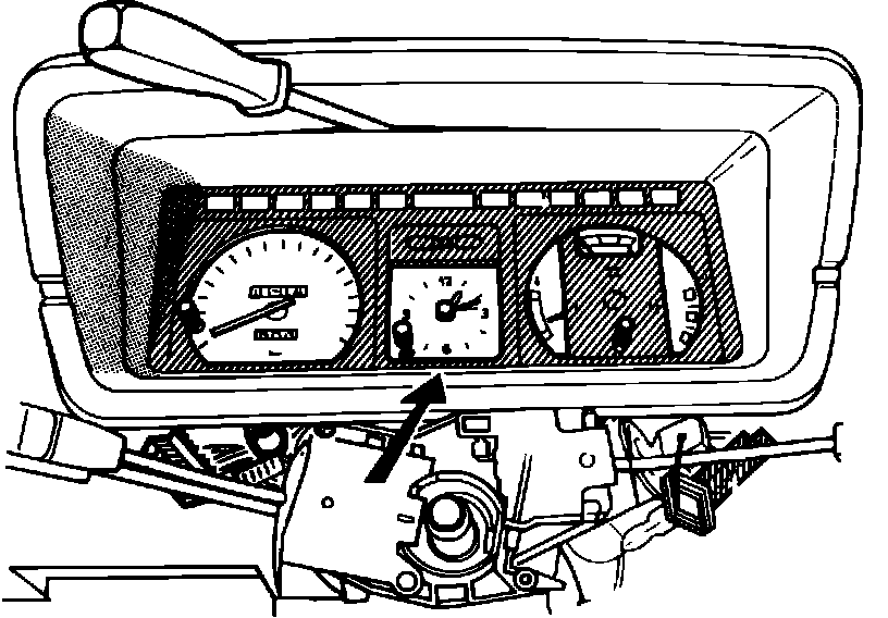4. Press instrument cluster retaining clips toward center of cluster and pull cluster slightly forward. Disconnect speedometer cable and instrument panel electrical connectors, then remove instrument panel.