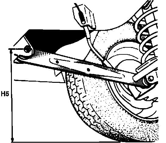 3. Measure and record rear ride height (H5) between side arm bolt and ground, Figs. 2 and 3.