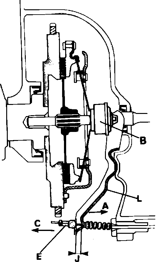 2. Hold release bearing against pressure plate diaphragm by pulling lever (L) in direction A as shown in Fig. 1.