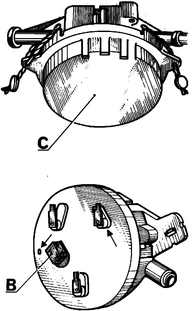 2. Turn button (B) one quarter turn in direction of arrow and towards the ``O'' mark on indicator.