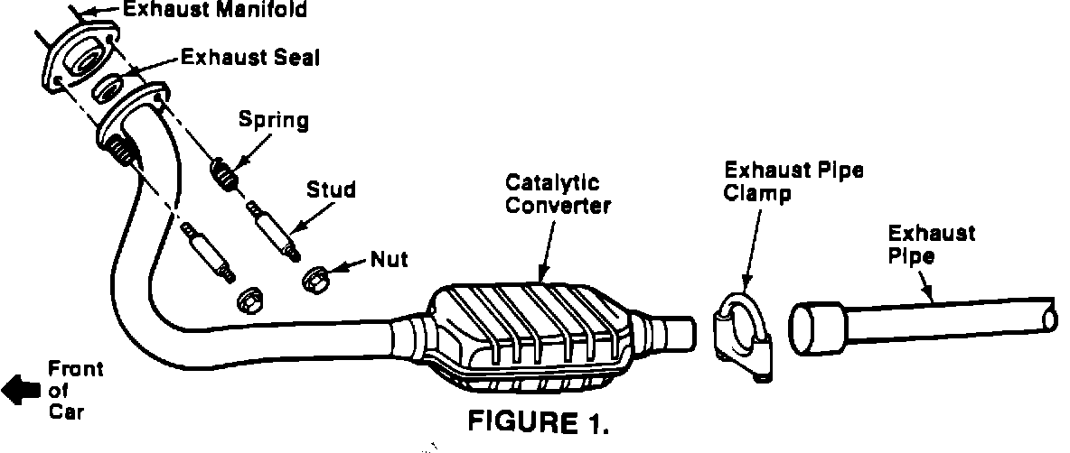 1. Saturate the nuts at the front of the converter and exhaust pipe clamp at the rear of the converter with Mopar Rust Penetrant PN 4318039 or equivalent (Figure 1). Allow 5 minutes for penetration.