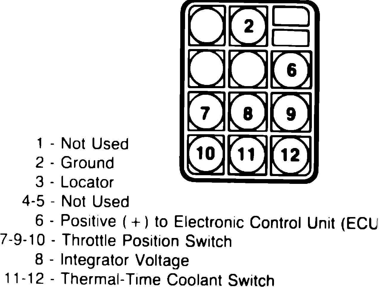 1. With ignition off, connect ohmmeter between diagnostic socket terminals 7 and 9, Fig. 8. Close throttle and observe ohmmeter. Reading should be zero ohms. Open throttle to wide open position and observe ohmmeter. Reading should be infinite.