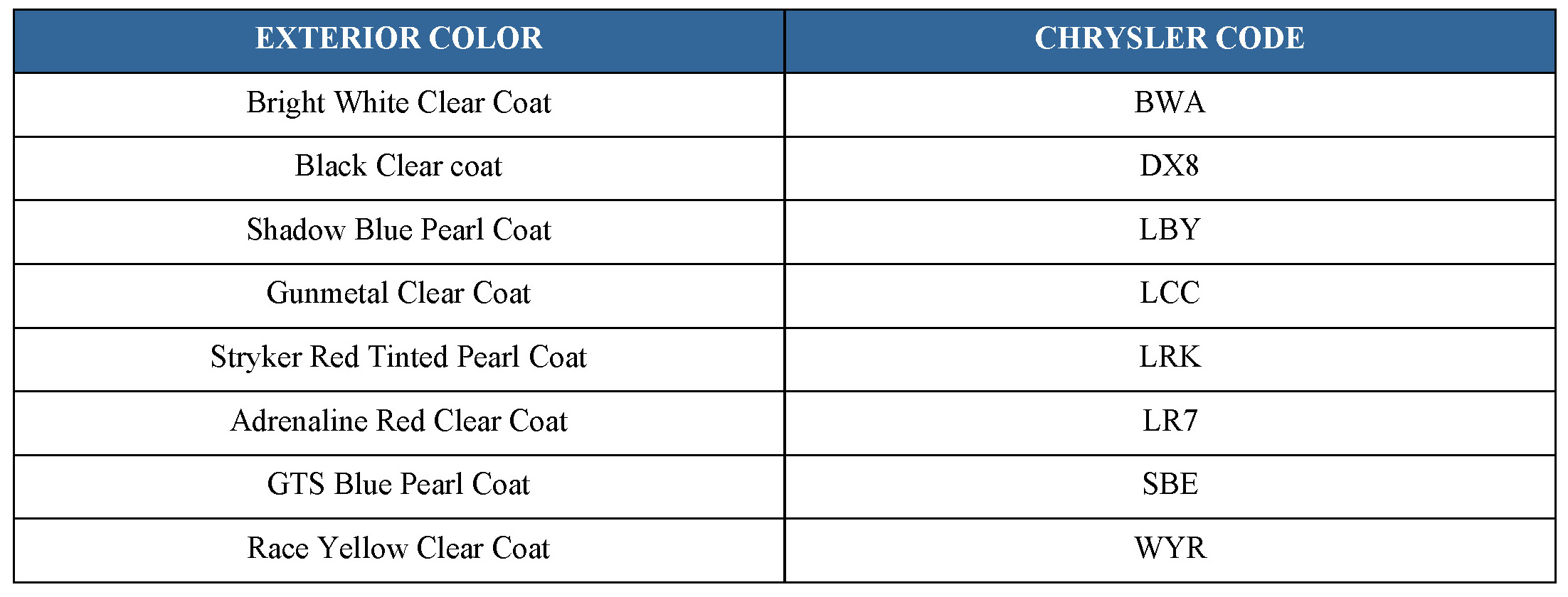 The first digit of the paint code listed on the vehicle indicates the sequence of application, i.e.: P = primary coat, Q = secondary coat. The color names provided in the Paint and Trim Code Description chart are the same color names used on most repair product containers.