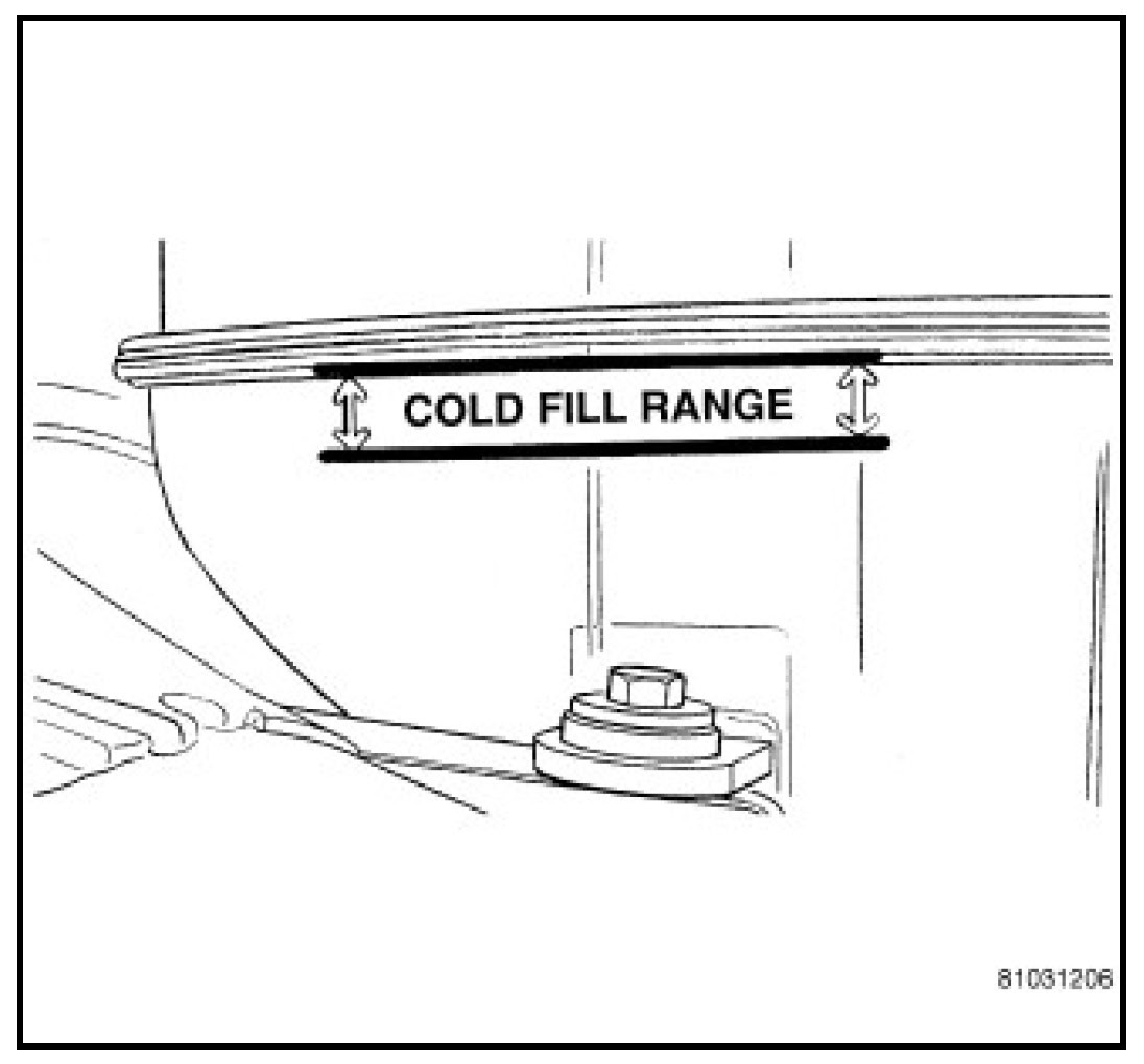 NOTE: The engine cooling system will push any remaining air into the coolant bottle within about an hour of normal driving. As a result, a drop in coolant level in the pressure bottle may occur.
