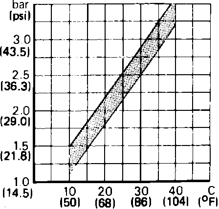 2. Turn on ignition and compare pressure gauge reading with recommended pressure given in Fig. 4.