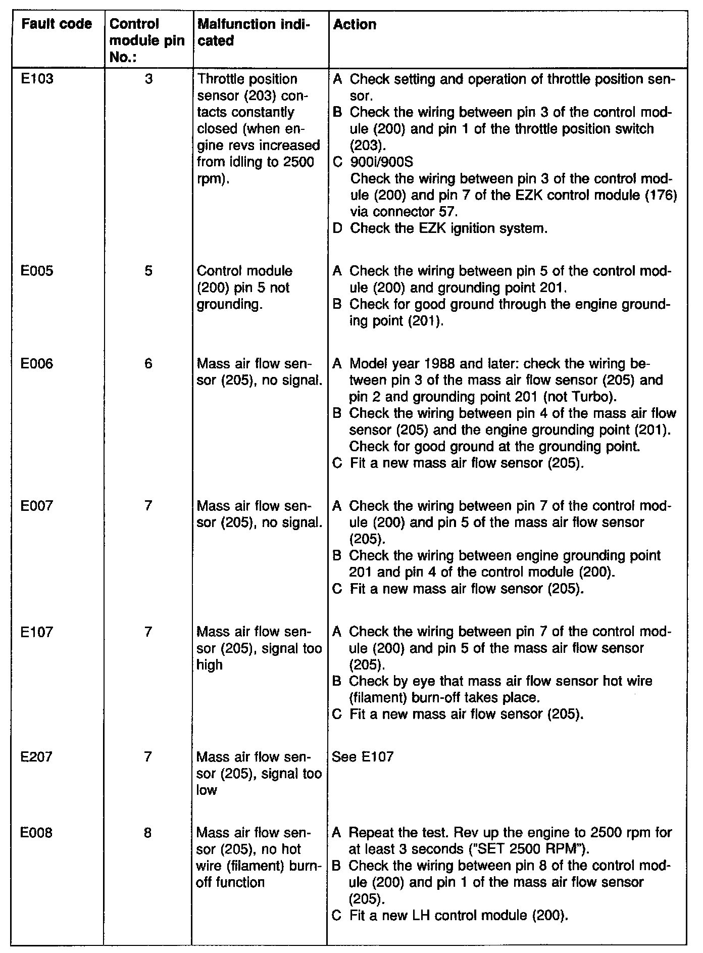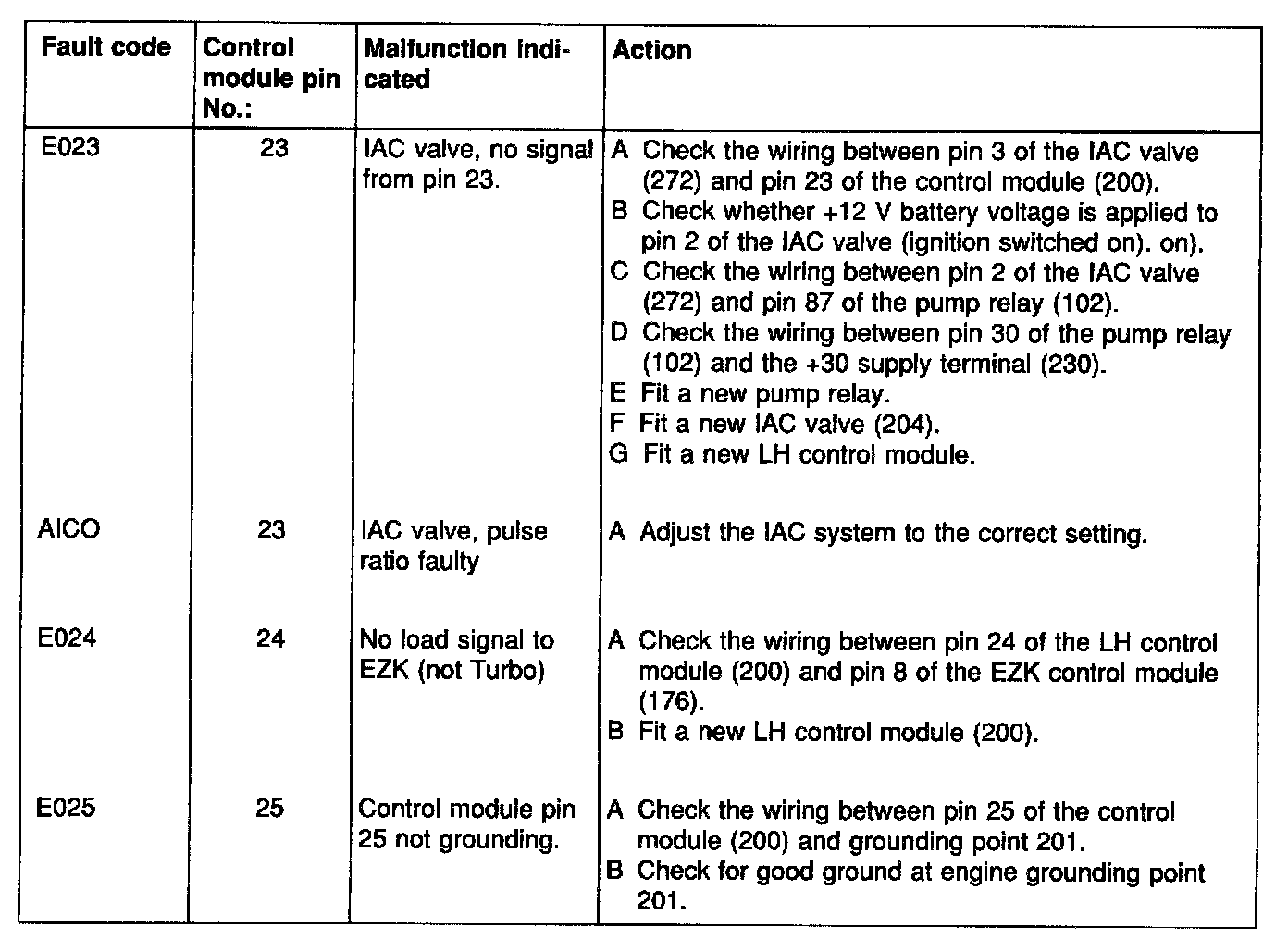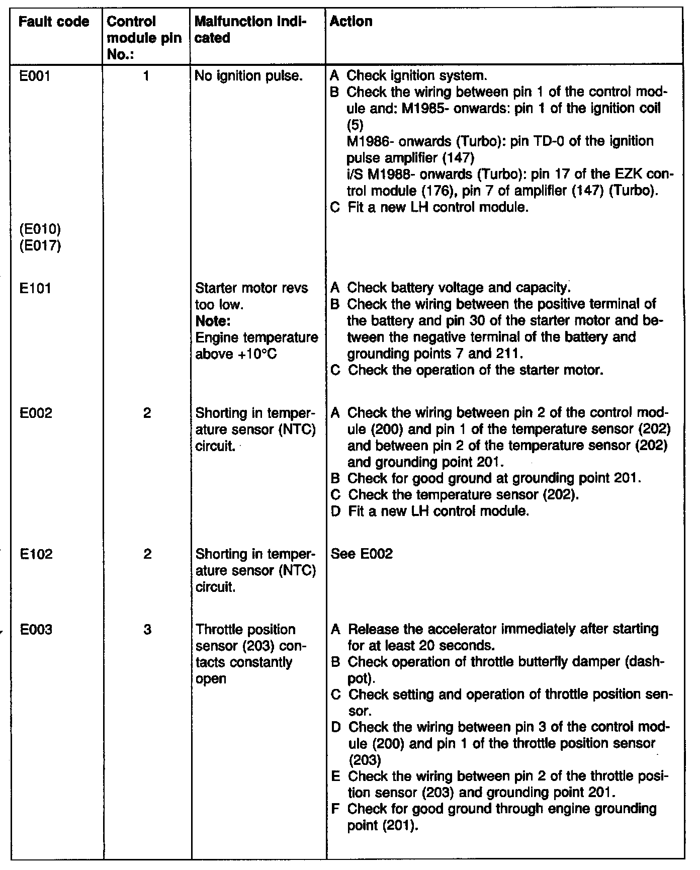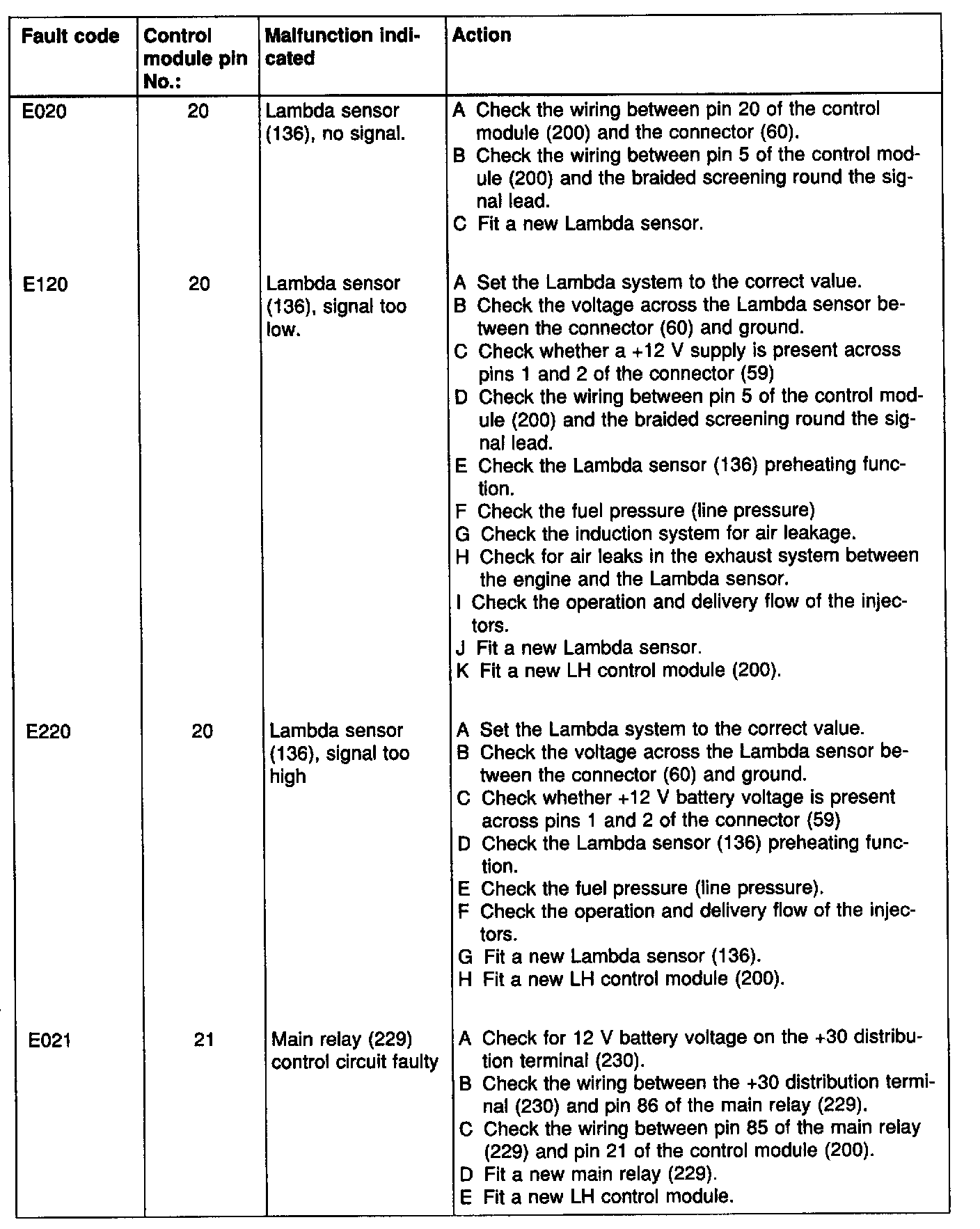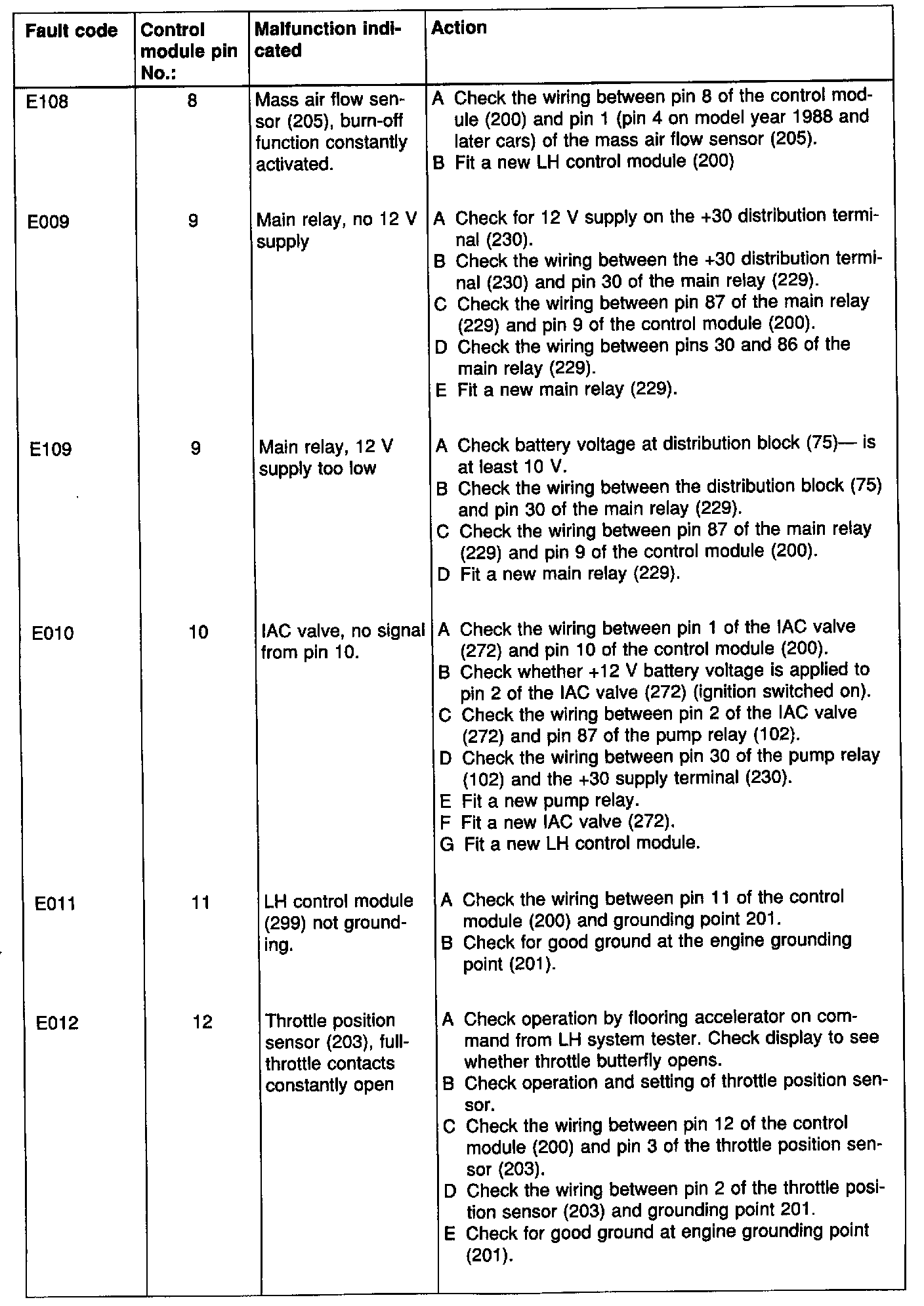 Fault diagnosis chart: LH 2.2 Fault codes in brackets in the fault-diagnosis charts denote that the faults concerned are attributable to the primary fault.