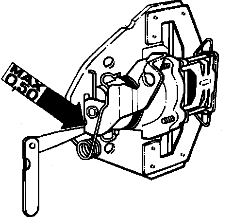 1. With the parking brake fully released, back off the adjusting nuts at the hand brake lever until no tension is on the actuating lever at the caliper. Then insert a 0.5 mm feeler gauge between the caliper lever and yoke.