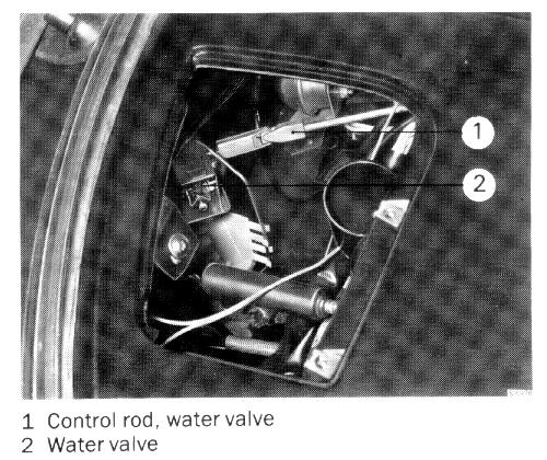 6 Remove the control rod from between the water valve and the control knob by sliding the rod forward as far as it will go, so that it comes free from the knob.