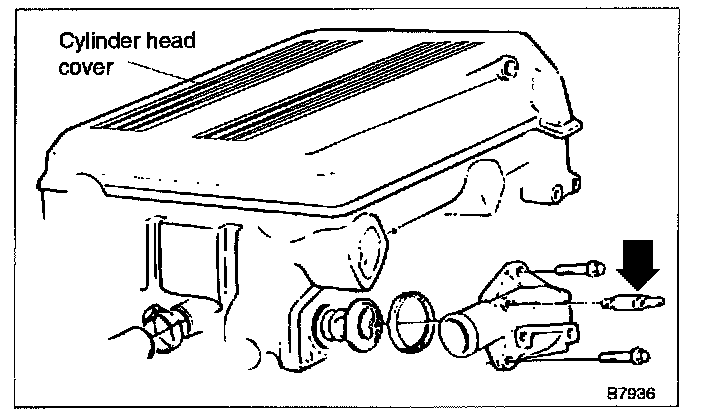 3. Position the new thermostat and gasket in the outlet. Install the thermostat housing. Tighten bolts to 18 Nm (13 ft lb)