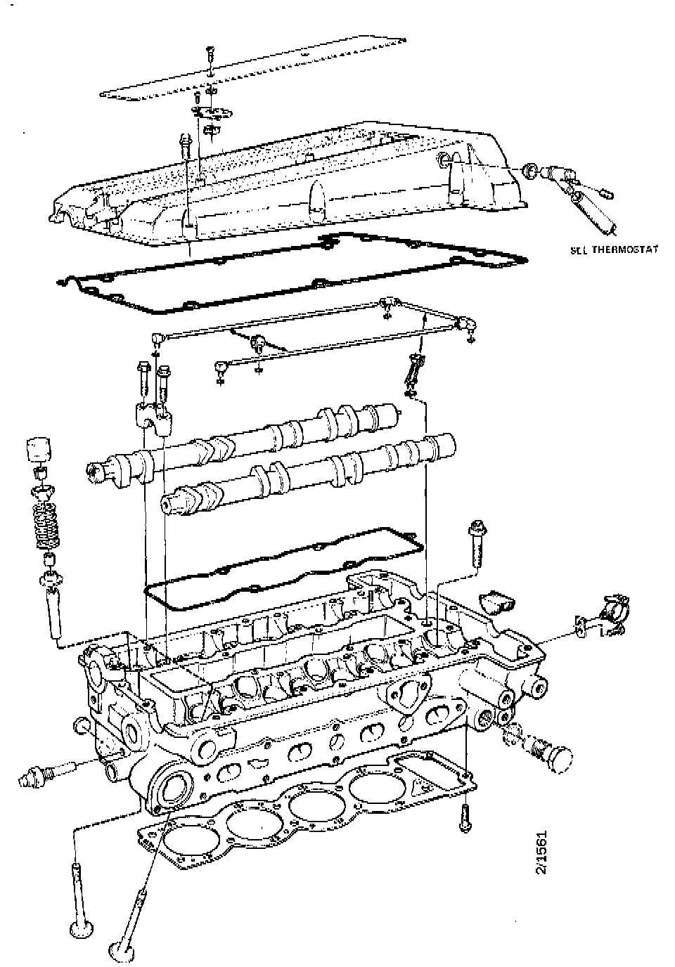 5. Remove valve cover retaining bolts and cover. Design of distributor driving dog allows the valve cover to be removed only when cylinder 1 or 4 is at TDC.