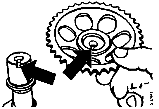 The camshaft sprockets have 38 teeth and are secured by means of a centre-bolt. They are located on their respective shafts by means of a slot on the sprocket and a corresponding dog on the shaft.