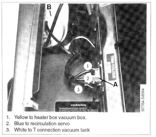) on models up to 1987. From 1988 the air reciculation solenoid is in passenger compartment, behind right footwell kickpanel.