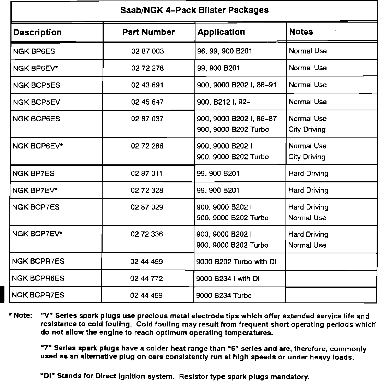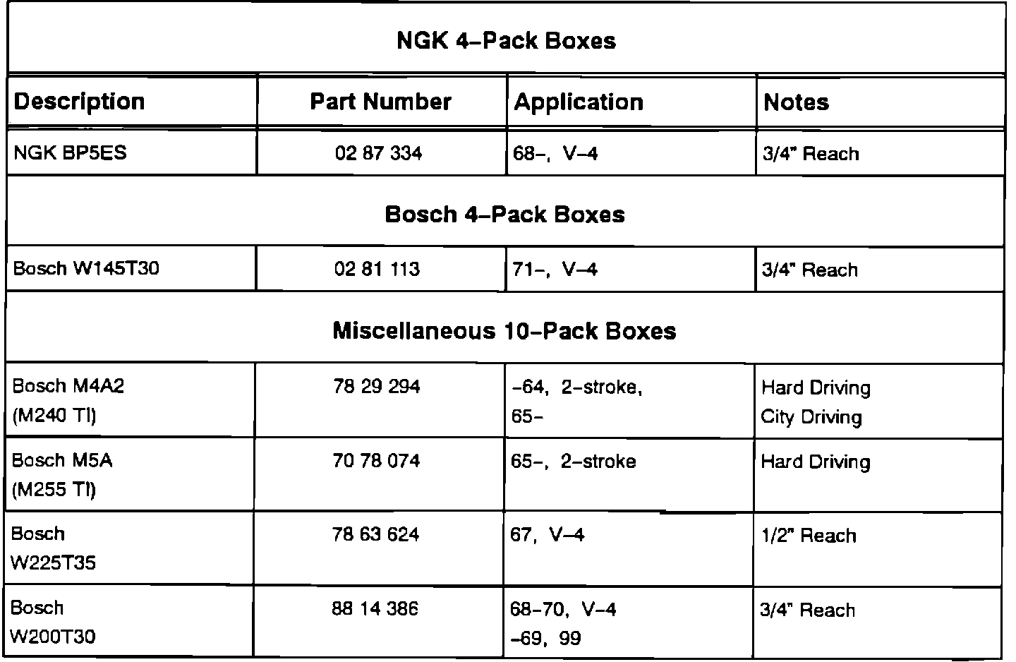 Spark Plug - Application Reference