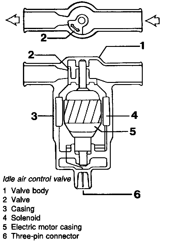 Idle air control (IAC) valve (LH 2.2)The idle air control valve allows a controlled volume of air to by-pass the throttle butterfly. The volume of air is determined by the degree of opening of the idle air control valve, which is controlled by signals from the LH control module.