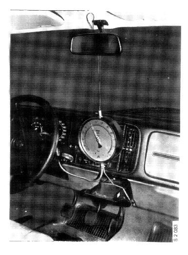 3 Connect pressure gauge 83 93 514 to the inlet manifold downstream of the throttle butterfly and hang the pressure gauge from the rear-view mirror inside the car.