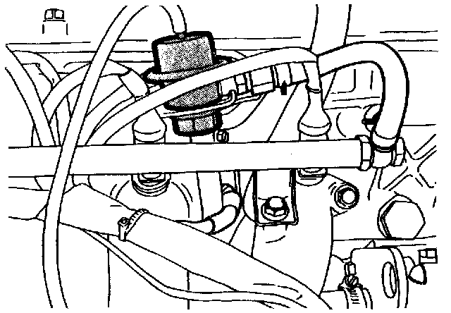 2 Remove the hose between the intake manifold and the diaphragm side of the pressure regulator.