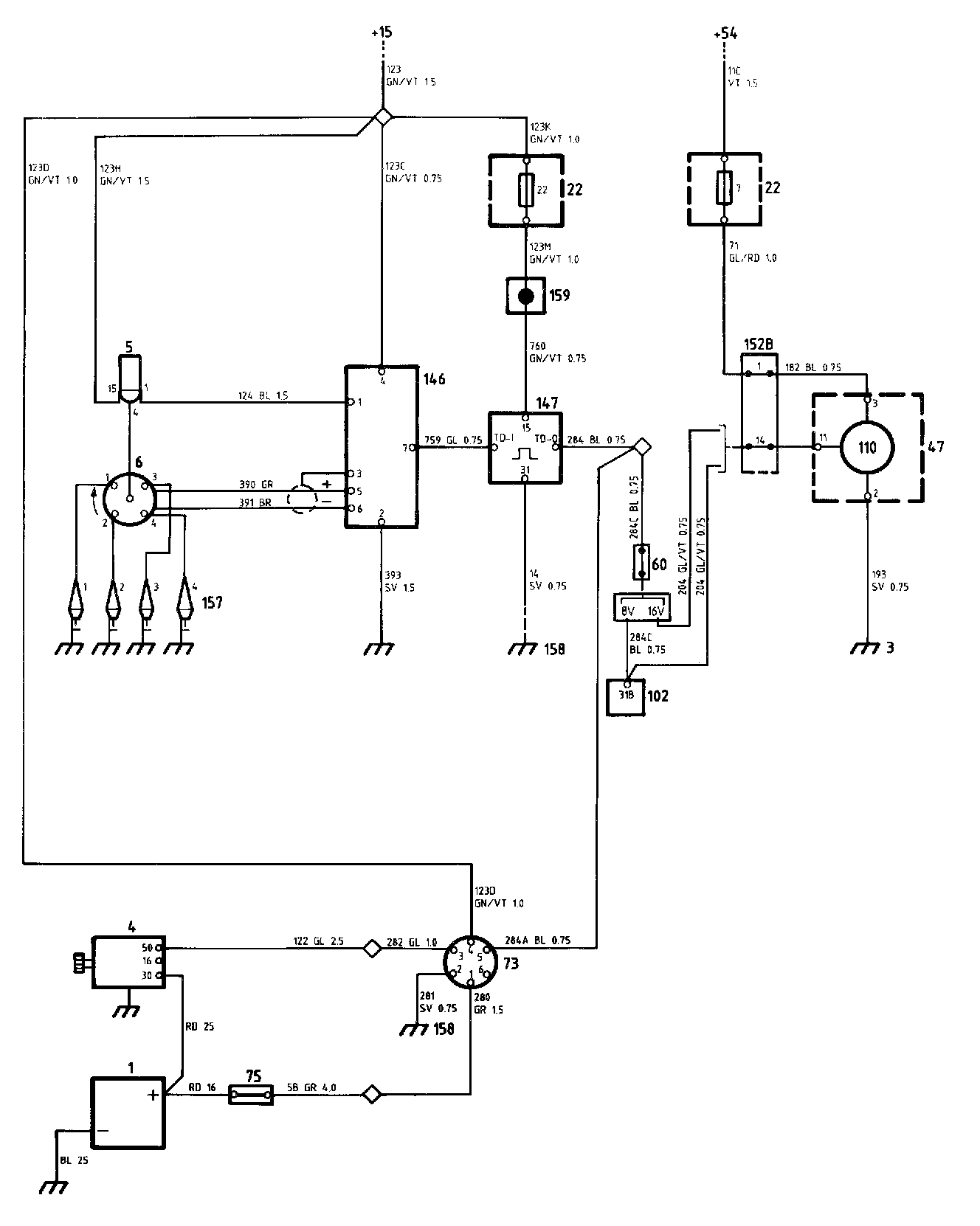 4. Positive supply (+15) from the ignition switch when the latter is in the start or drive position