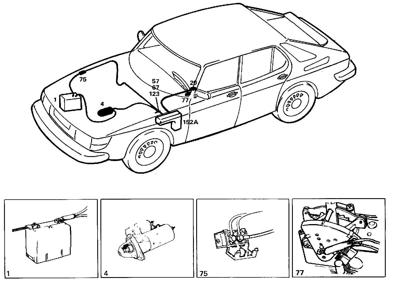 77 Start inhibitor switch (only on cars with automatic transmission)