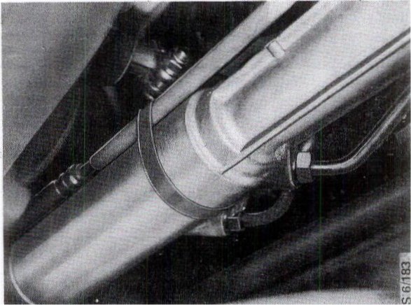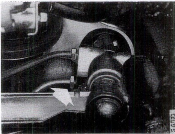 5 Remove the strap holding the return pipe to the rack housing and snip through the tie securing the flow hose to the pipe between the control valve and the servo cylinder.