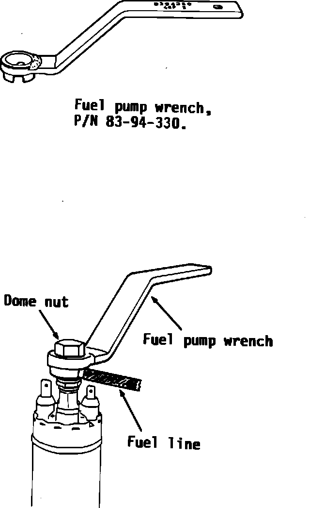 The wrench fits over the banjo fitting for the fuel line and allows the technician to hold the fitting while removing the dome nut. The wrench also helps the technician to avoid contact with the electrical terminals on the pump. The pump must be removed in order to perform work on the check valve.