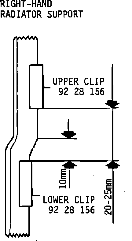 2. Re-locate the lower clip on the radiator cross-member to the position shown in the drawing.