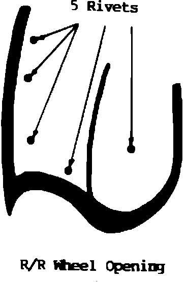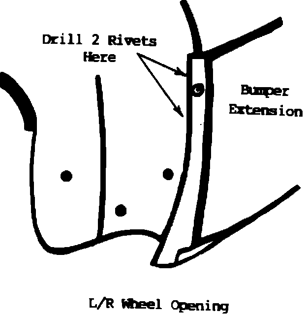 2. Drill out the (5) rivets in each of the rear wheel openings with a 3/16" bit.
