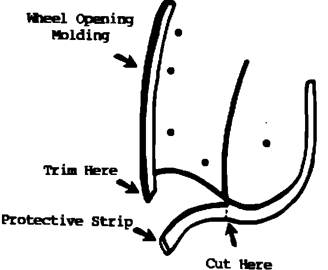 4. It may be necessary to trim the lower rear end of the wheel opening molding so that it does not extend past the end of wheel opening.