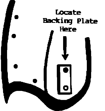 5. Locate backing plate over the inner screw hole with the thick edge facing the outer edge of the wheel opening. Install mud flap with the