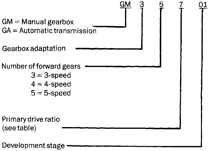 TYPE DESIGNATION FOR MANUAL GEARBOXES 1979-83 MODELS