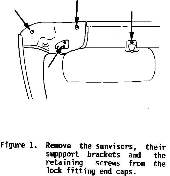 3. Remove the sunvisors and their support brackets (Figure 1).