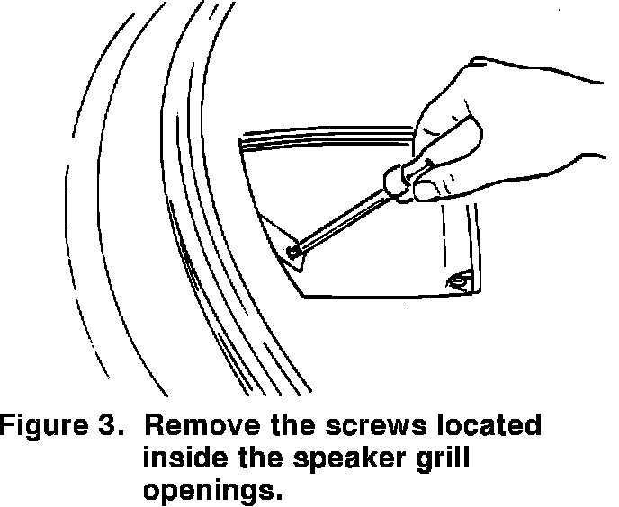 13. Remove the two dash panel retaining screws (T25) located inside the speaker grill openings (Figure 3).